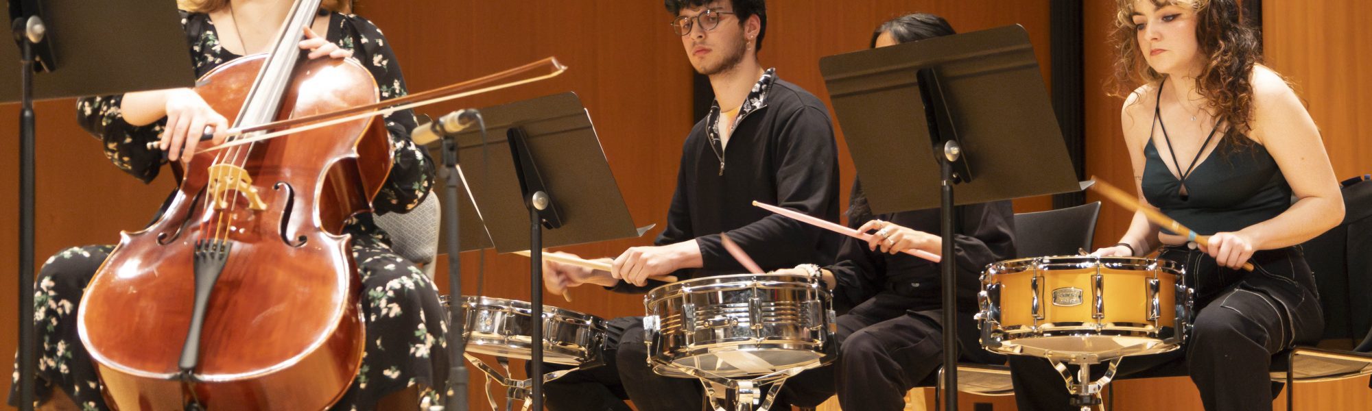 Chamber Ensemble features skilled and talented students on an array of eclectic instrumentation. Percussion Ensemble features a variety of percussion instruments with all original compositions. Together in concert, these highly musical groups present an unforgettable concert. Directed by George Darrah and Nathan Cohen.