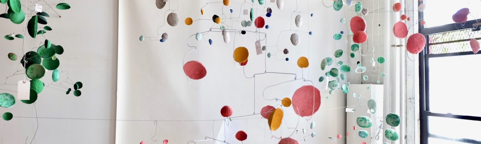 Crafted from recycled photographers’ background paper, Yuko’s lightweight sculptures balance color, texture, and form in mesmerizing motion—turning gently with the air currents of the gallery. Inspired by her 100-day painting project during the 2020 lockdown, Salad embodies transformation, lightness, and the joy of discovery.