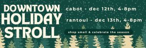 The Cabot — Limited edition prints of Alyssa’s Watters painting of the Cabot marquee! Box office will be open; gift cards + gift memberships available. Come learn about The Cabot and see the restored 1920’s lobby. Pathways for Children toy drive: Please bring a new, unwrapped toy to the donation box in The Cabot’s lobby as you shop downtown. Every child deserves holiday joy! *Shopping Passport location.