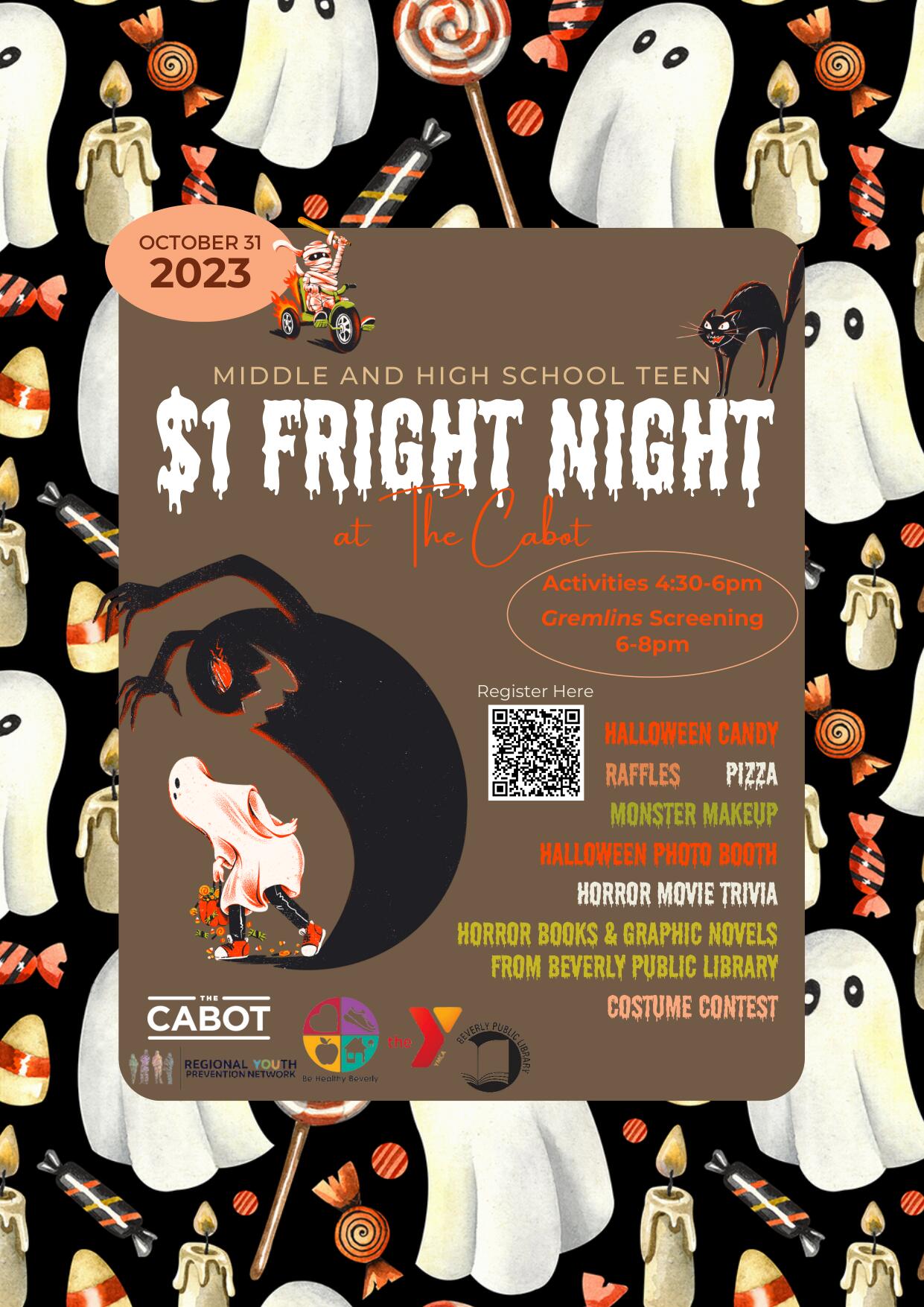 This Halloween, the Greater Beverly YMCA, Be Healthy Beverly, a youth substance use coalition, and the Regional Youth Prevention Network, are excited to present $1 Fright Night at The Cabot! Middle and High School students from across the North Shore are welcome to stop by between 4:30 and 6pm for some Halloween tricks and treats, before settling...
