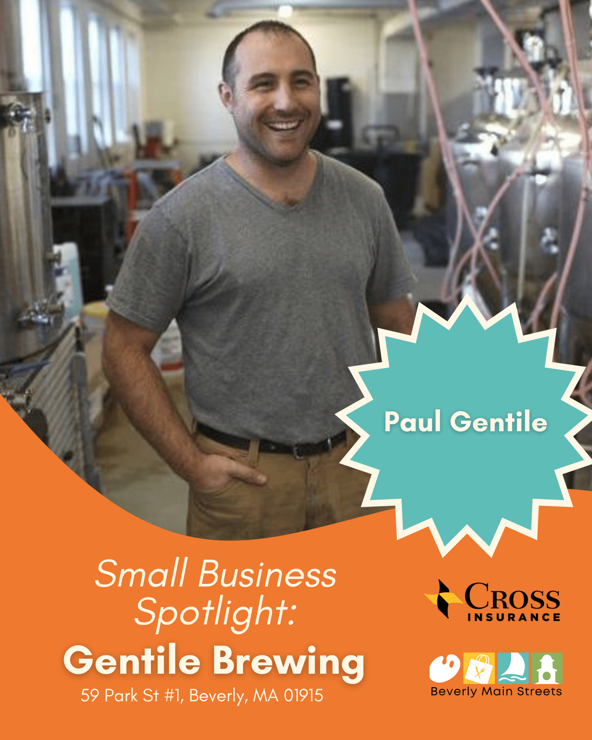 At Gentile Brewing, community comes first. That means collaborating with local food vendors, teaming up with businesses like Copper Dog Books, and supporting countless local nonprofits. It also means giving back: Paul volunteers his time with Beverly Main Streets, the Greater Beverly Chamber of Commerce, and the Beverly Bike and Pedestrian Action Committee, while also coaching youth sports that his sons play.