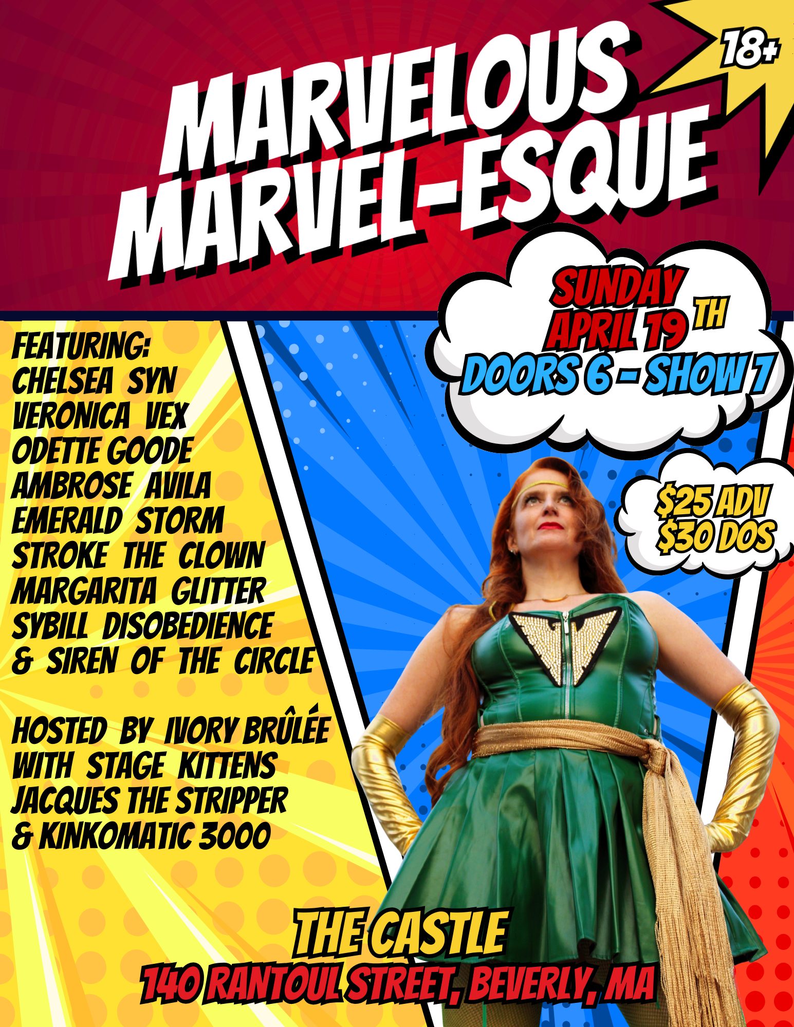 Marvelous Marvel-esque On a Frost-y night, prepare for battles of good vs. evil as your favorite characters from the Universe step off the page and into The Castle! These heroes, villains, and XXX-men are going to make for one epic comic Strip! Featuring: Chelsea Syn Veronica Vex Odette Goode Ambrose Avila Emerald Storm Stroke the...
