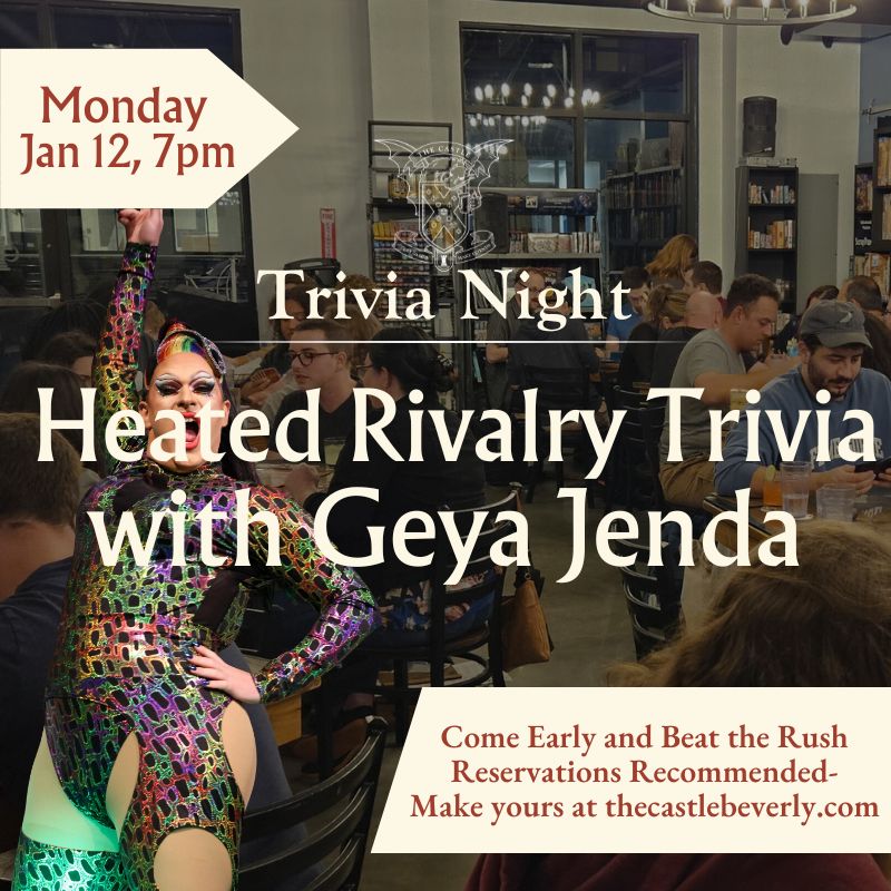 Join us for a night of drag trivia hosted by Geya Jenda! Trivia will start at 7PM and reservations can be made at 6:30PM to grab a bite to eat!